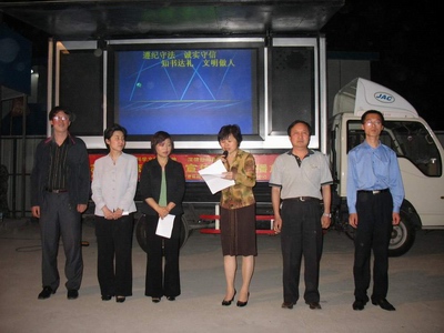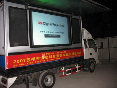 承担本次播放任务的流动科普宣传车是由市科学技术协会针对科普宣传日益需求而研制的,车体携带多媒体影像显示屏和立体声音频播放系统,音像播放流畅清晰,不仅能提供政府各有关部门公益宣传服务,还可满足各企事业单位户外大型宣传活动的视听需求。