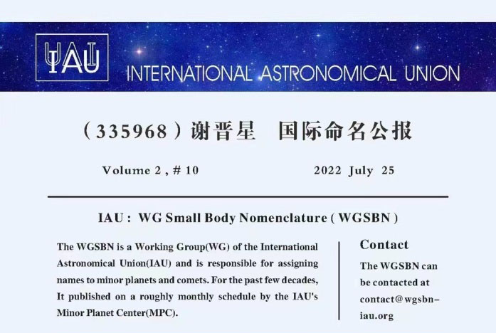 众所周知,小行星命名具有国际性、永久性和惟一性,是一项崇高的国际荣誉,因此,受到社会各界人士的追捧。 值此纪...