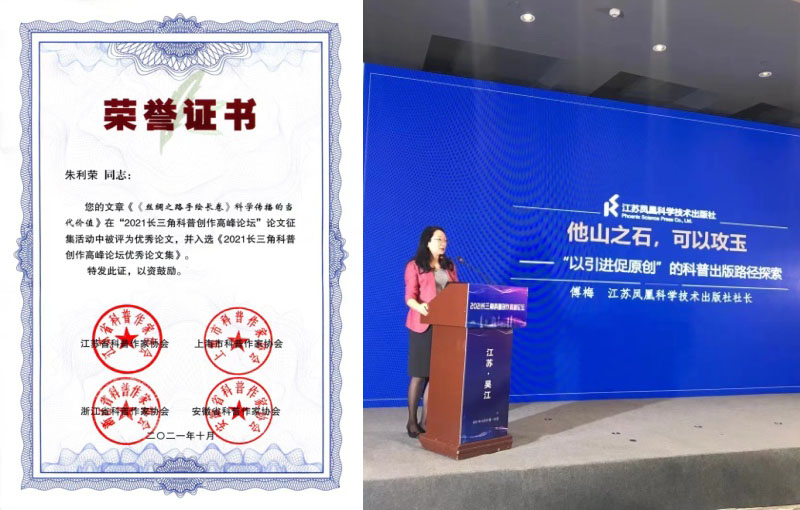获得2021长三角科普创作高峰论坛优秀论文[时间]:2021-10-29