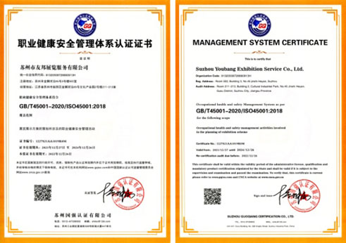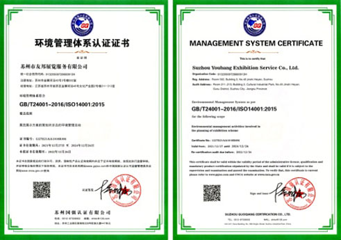 [编辑]:友邦展览 2021年12月30日,我单位获得ISO质量管理体系、环境管理体系和职业健康安全管理体系三认证。